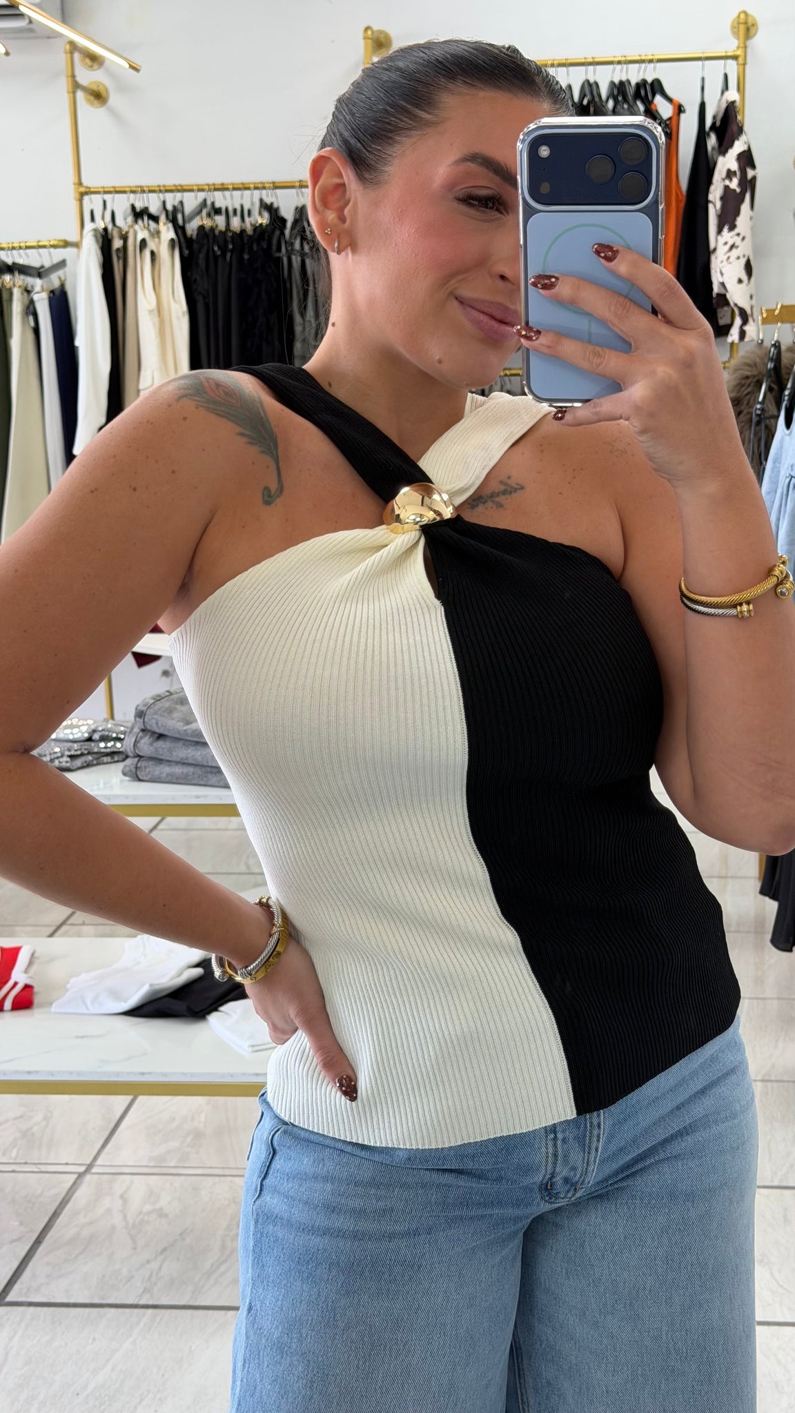 Black Contrast NeckDetails Top