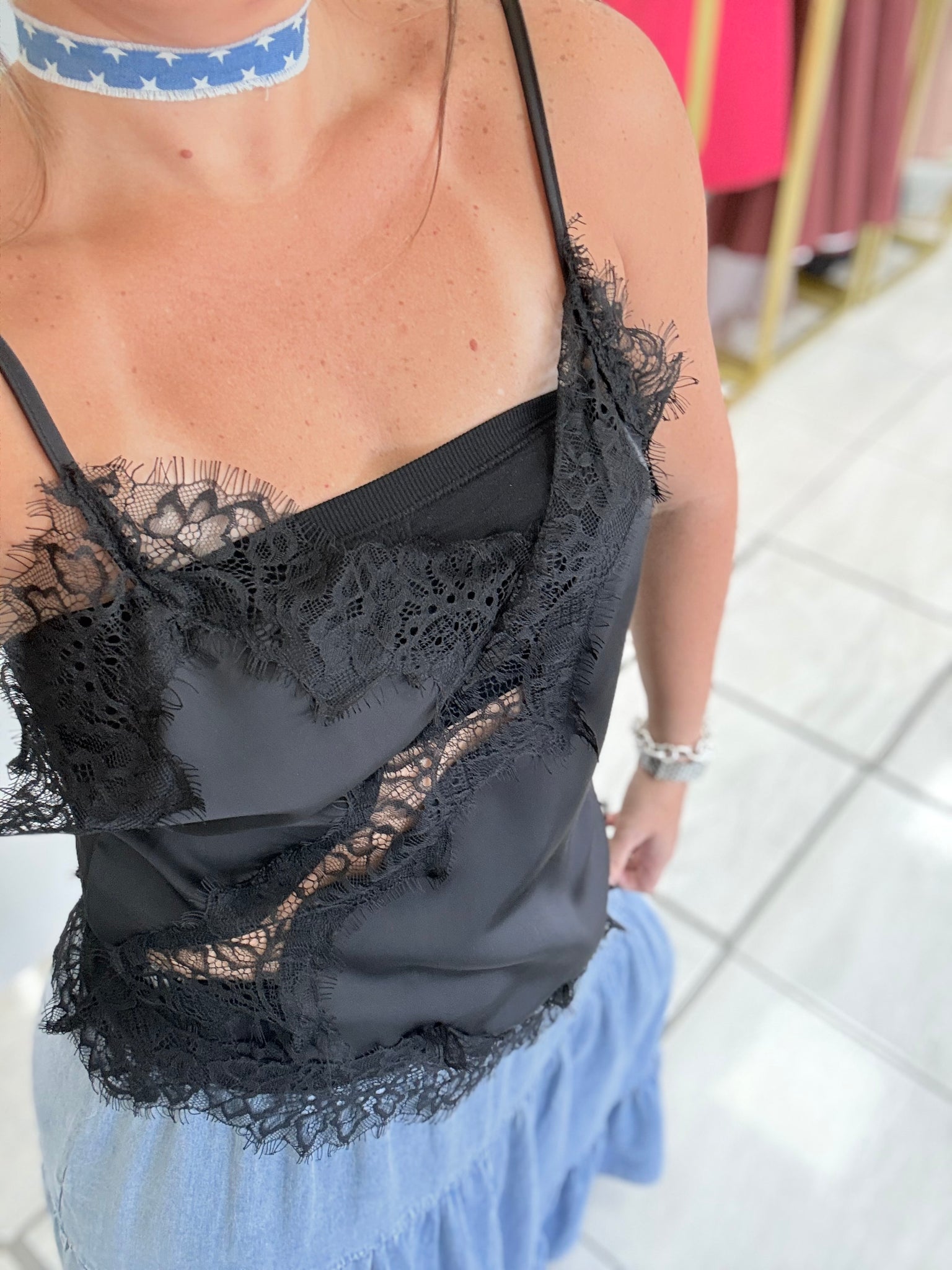 Black Lace Camisole Top (Oversized)