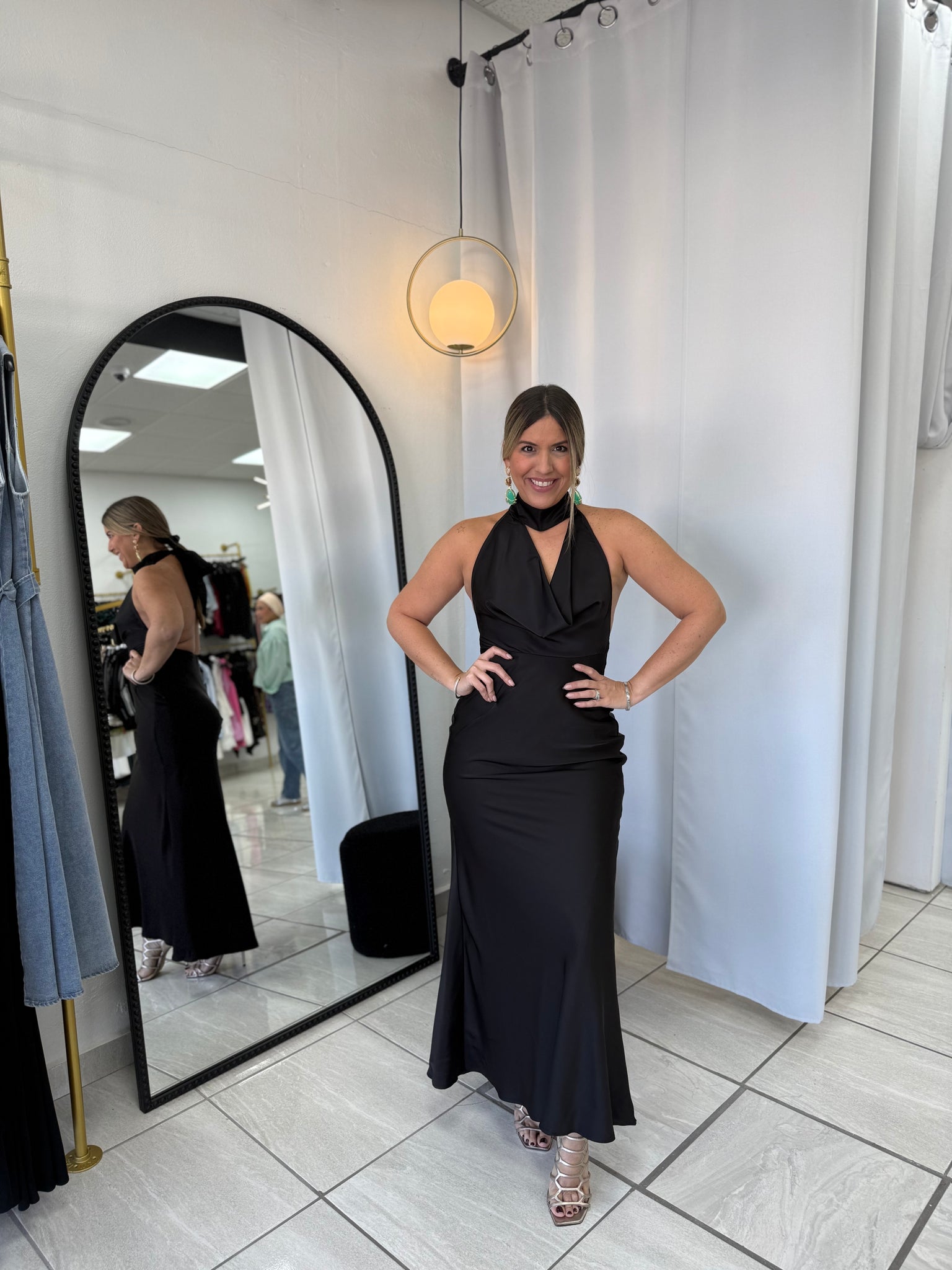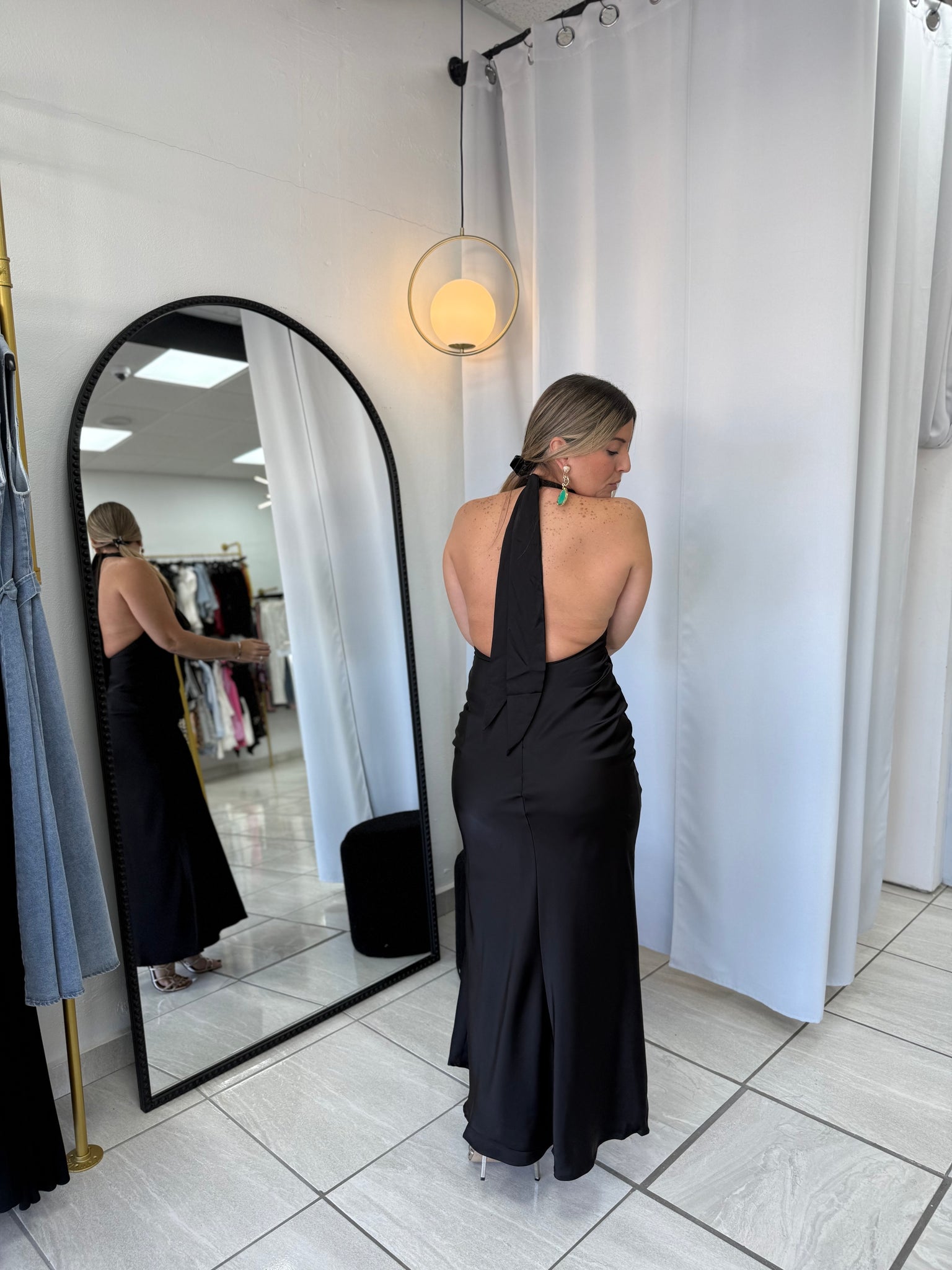 Black Satin Halter Dress