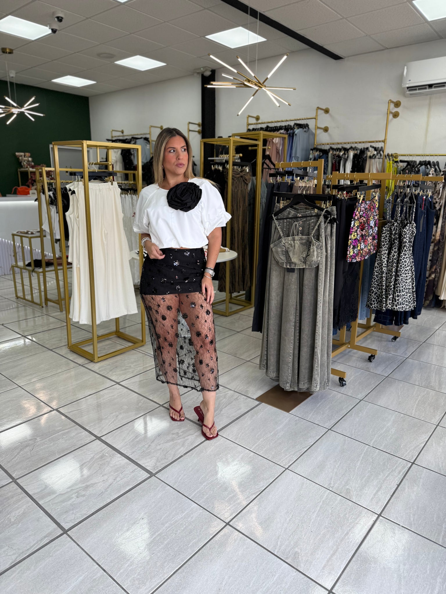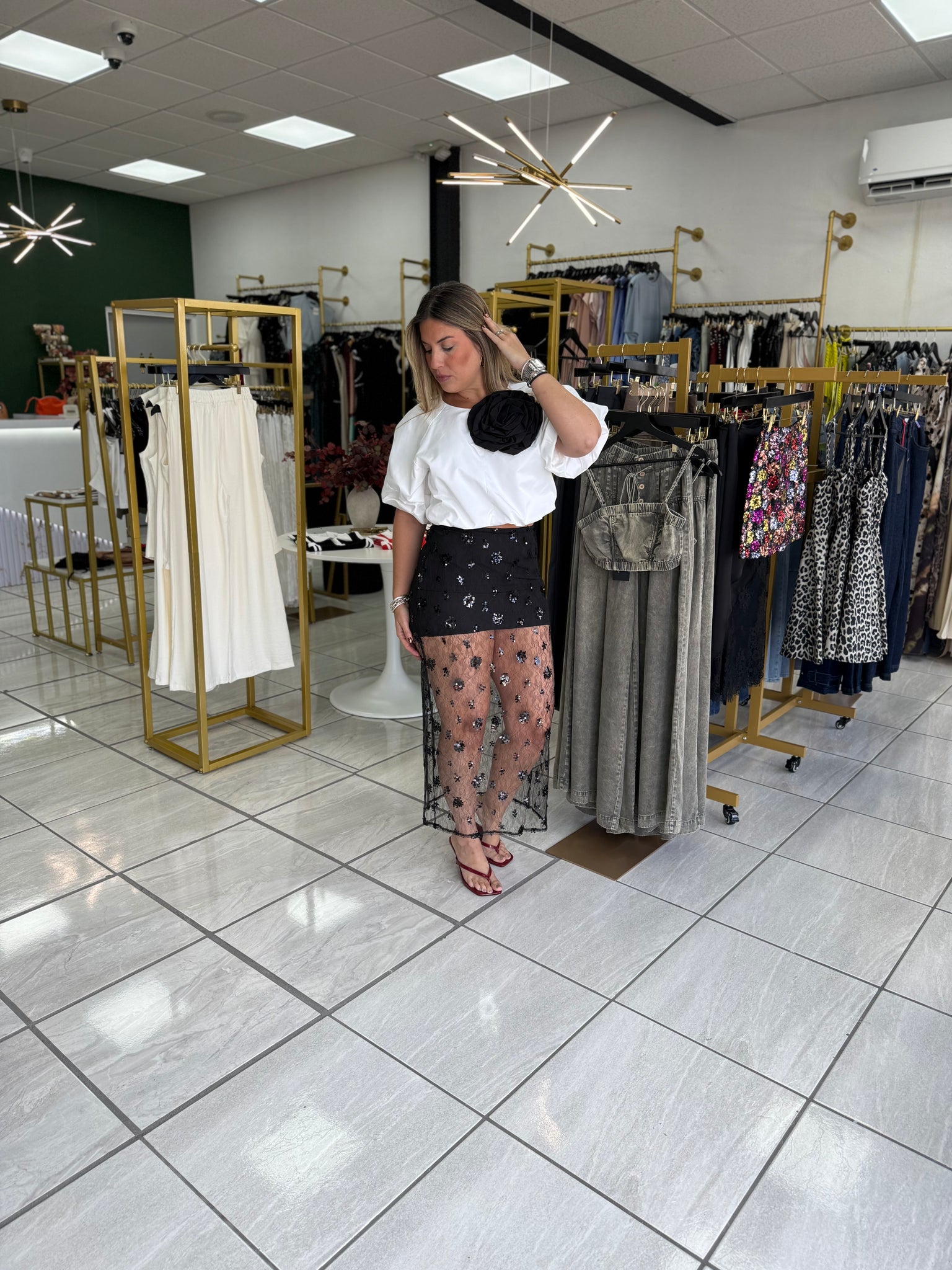 Black Lace Sequin Skirt