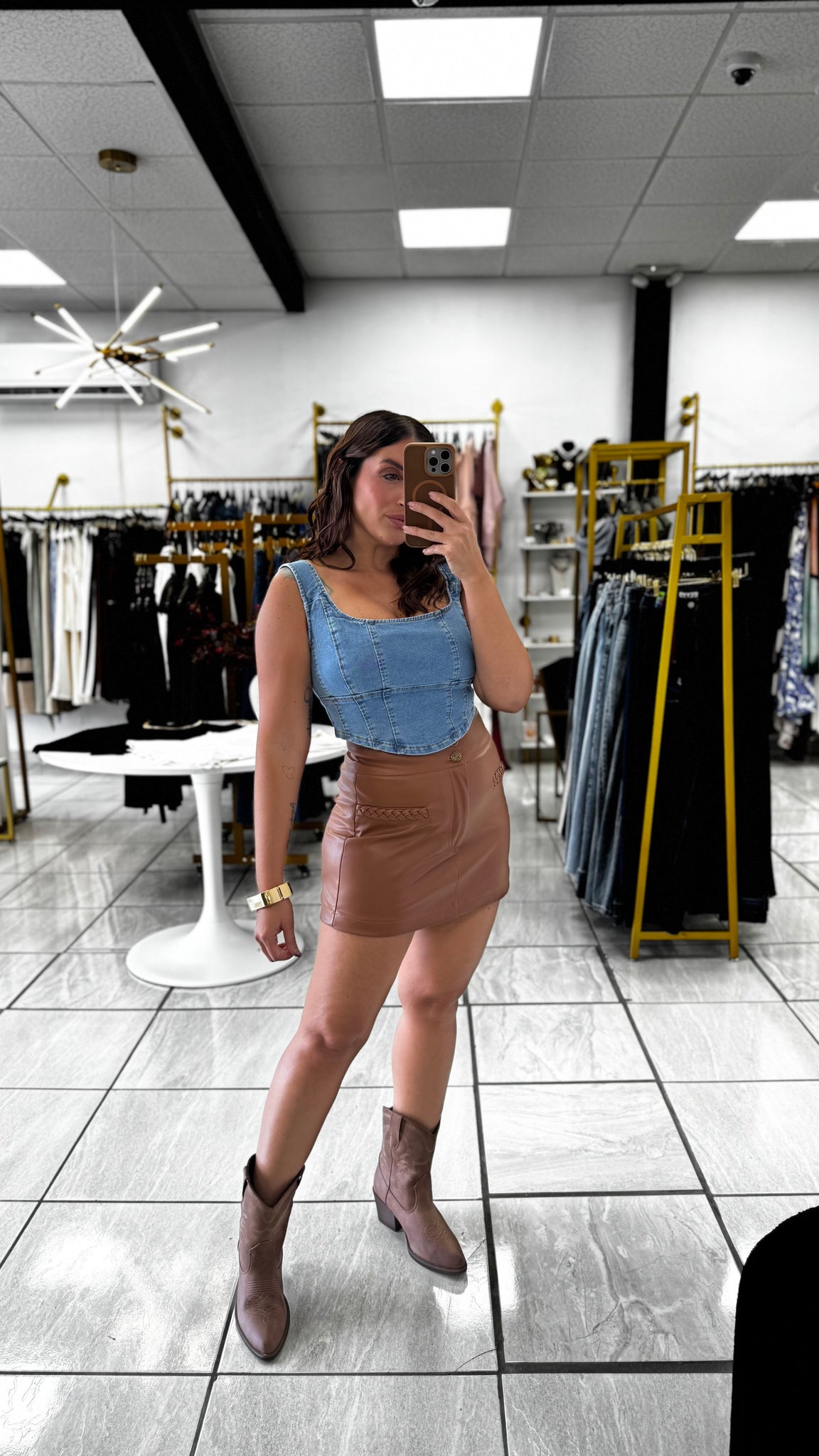 Brown Faux Leather Skort