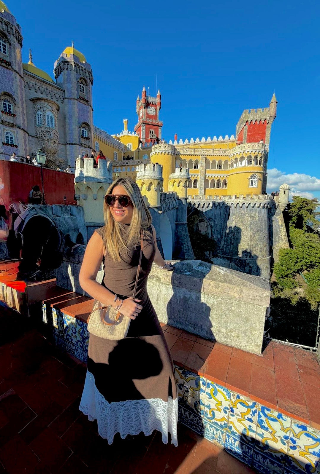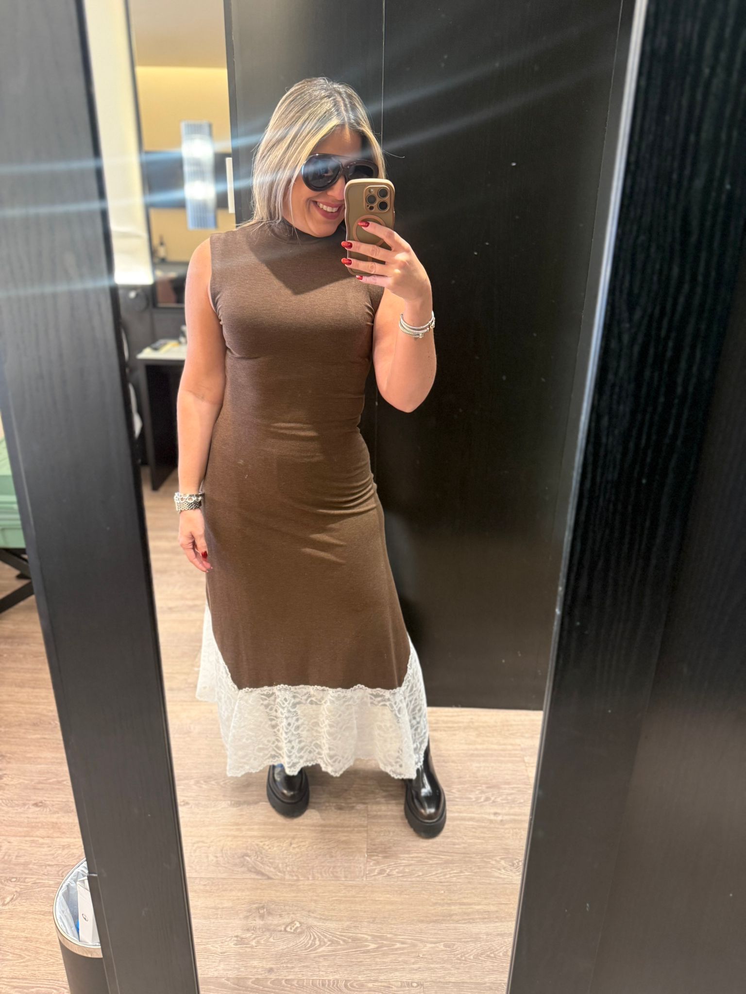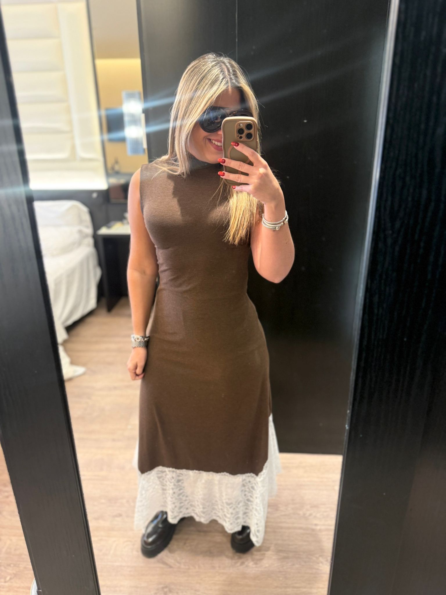 Brown & WhiteLace Dress