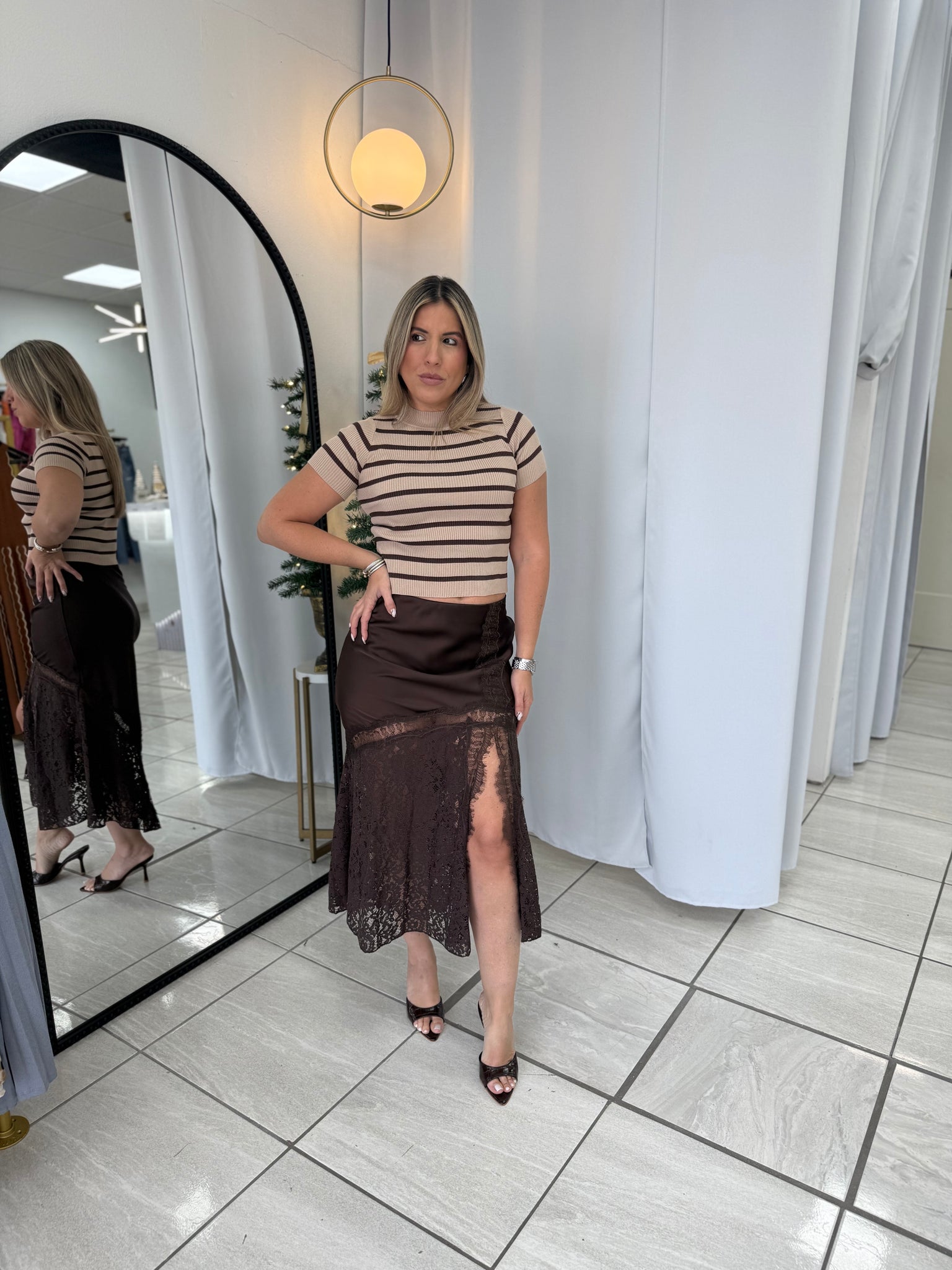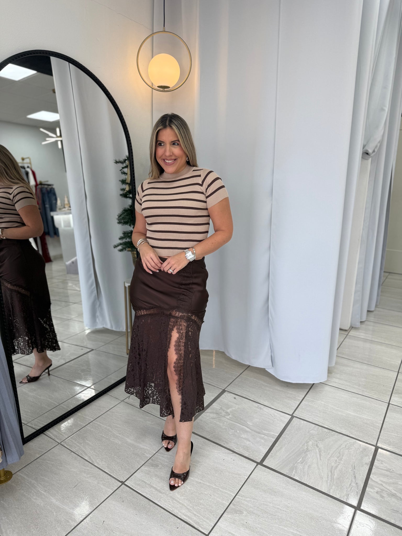 Camel Striped Top