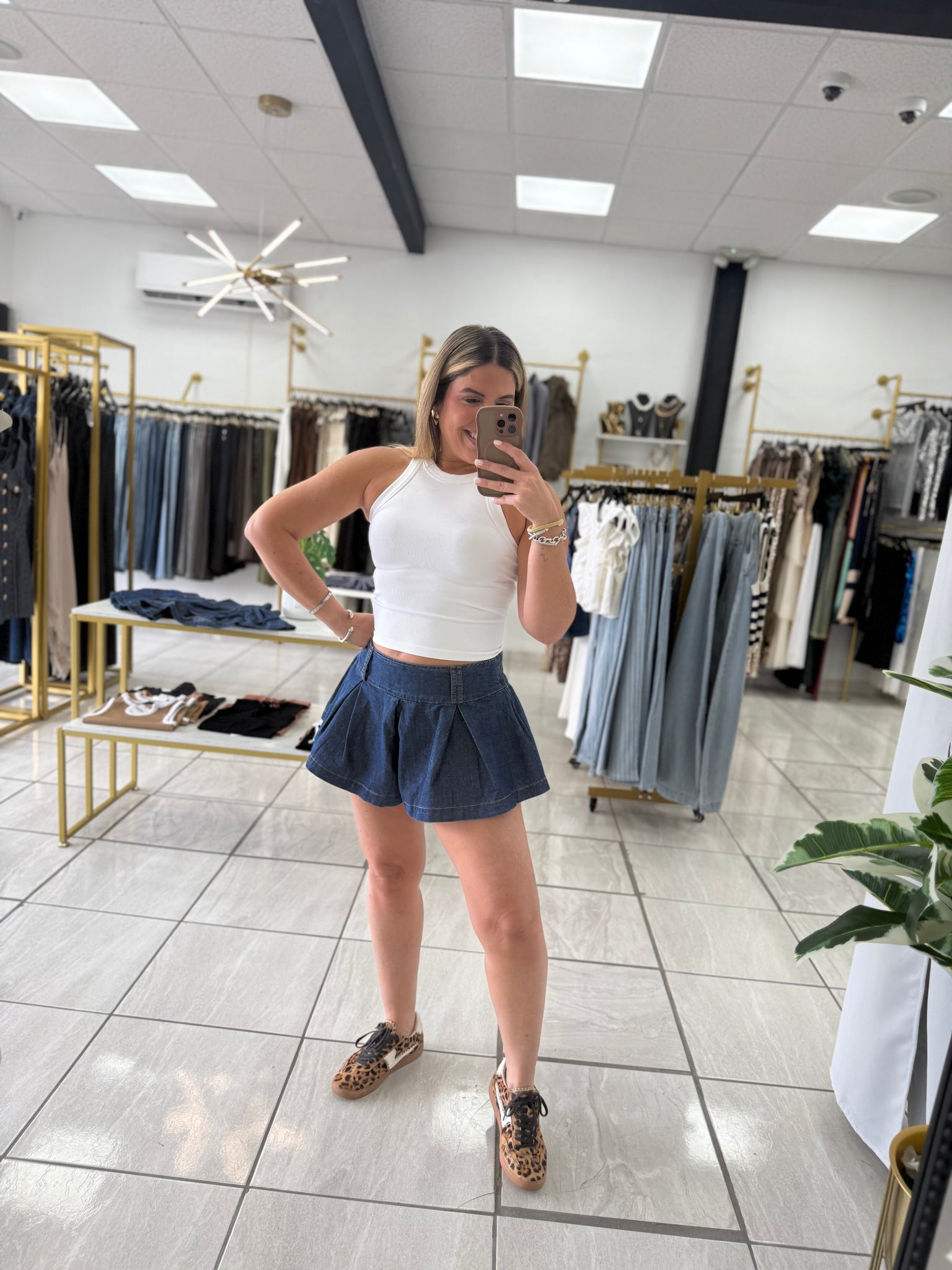 Denim Pleated Shorts