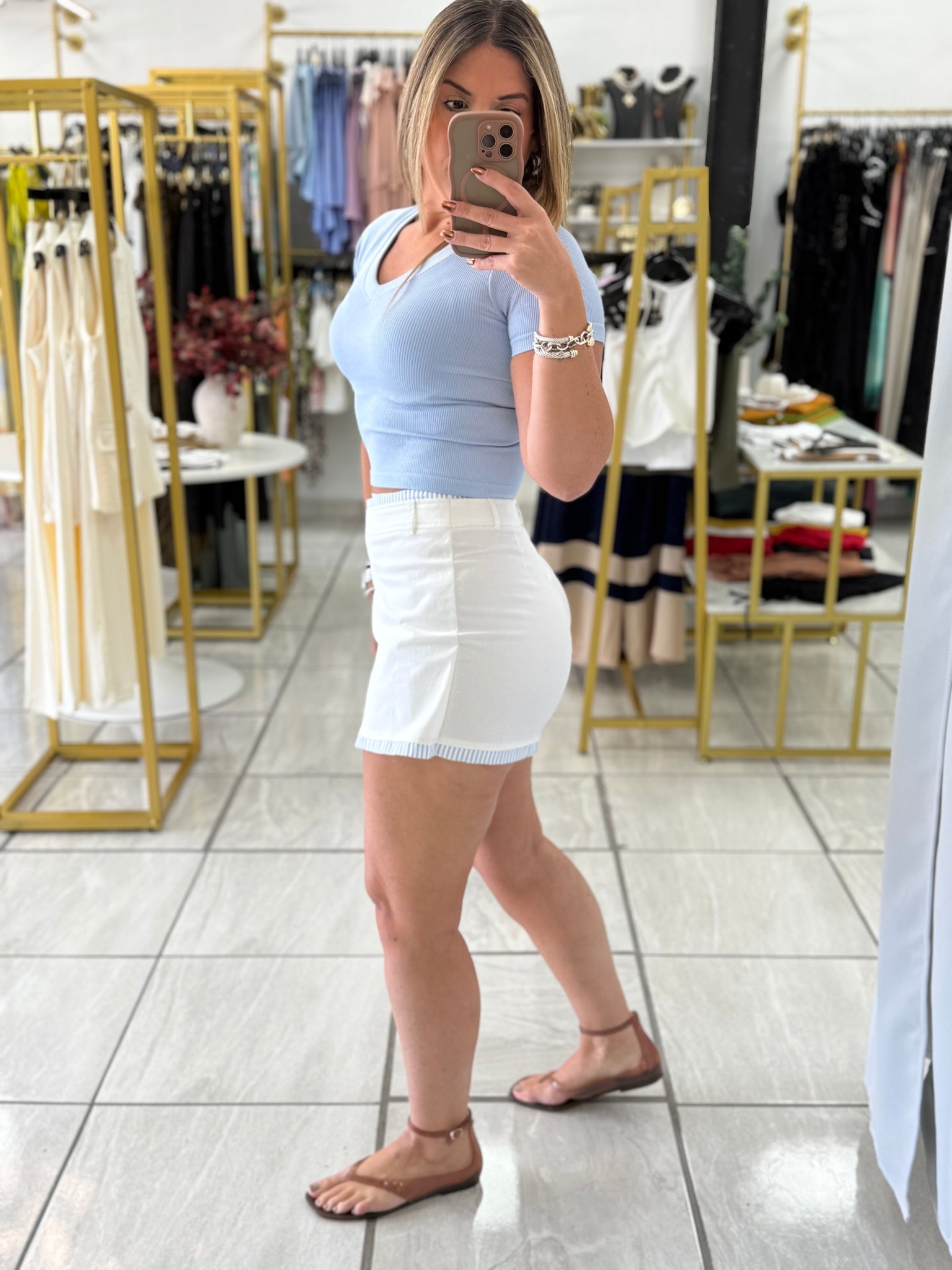 White Blue Stripes Skort