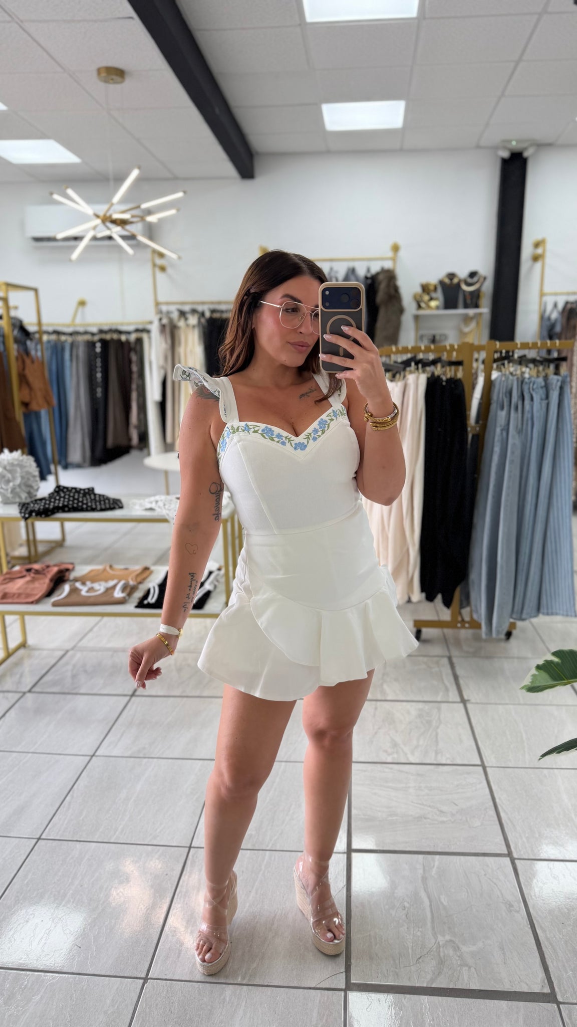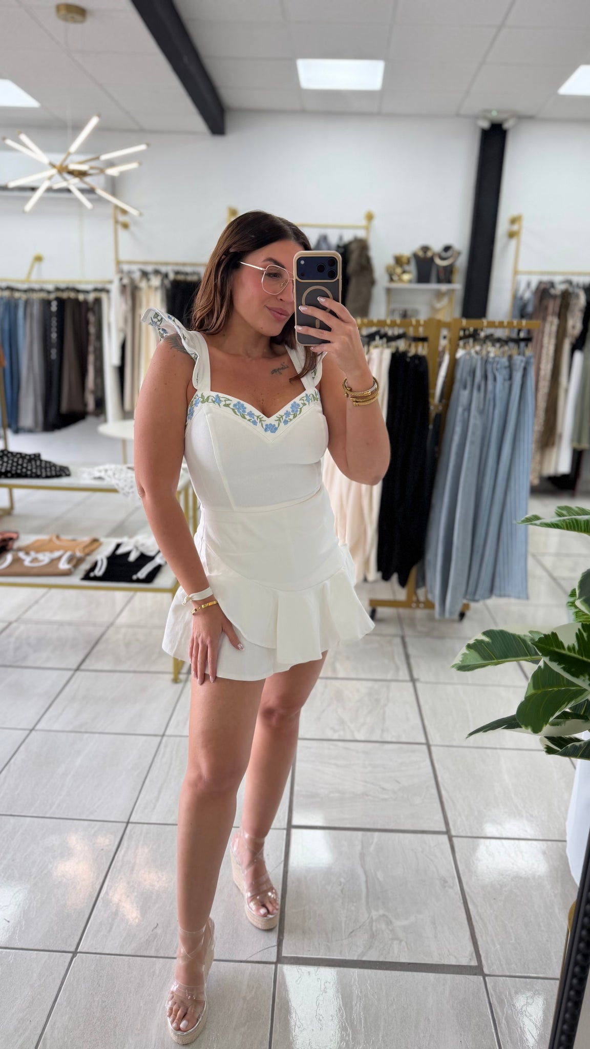 White Embroidered Romper