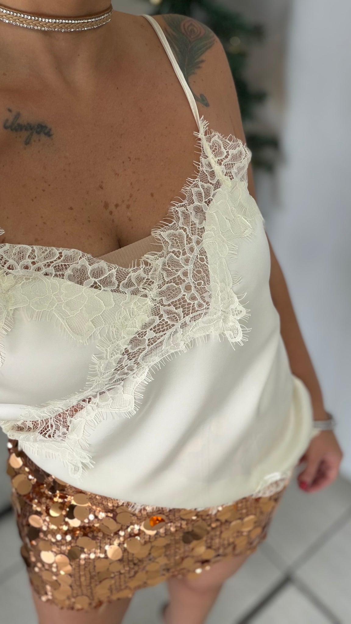 Beige Lace Camisole Top (Oversized)